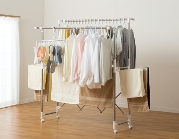 ですので、お洗濯物の種類に応じて、干しやすく調節いただけます。