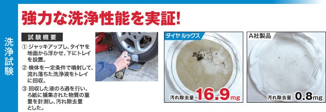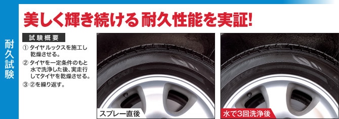 タイヤの汚れをスピード洗浄して、耐久性にすぐれたリッチな輝きを与える