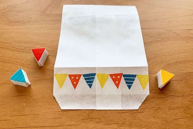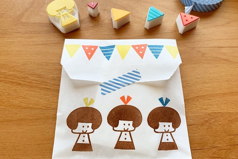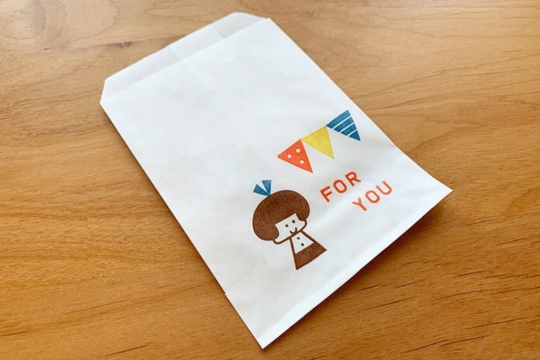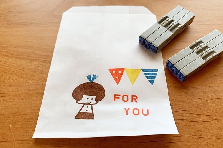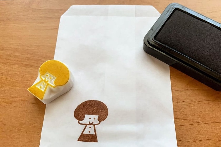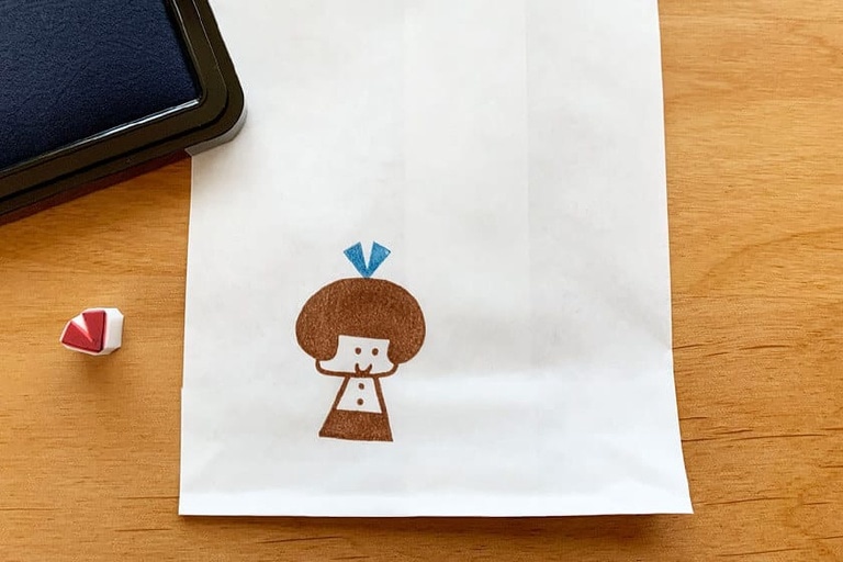 袋の口を折り返して折り目を付けたら裏側にはんこを押す。