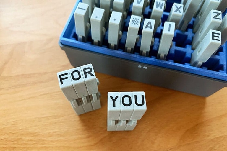 柄付きゴム印 連結式 アルファベットセット(今回はゴシック体2号を使用)