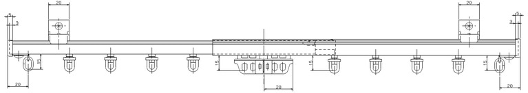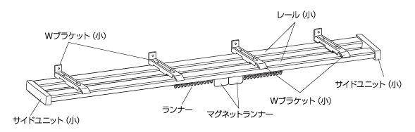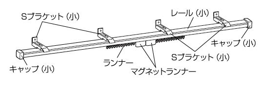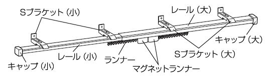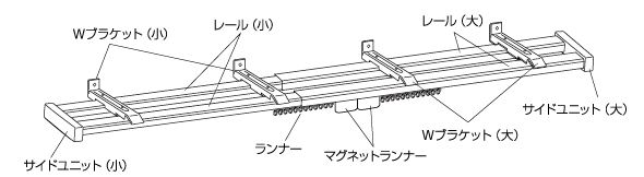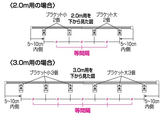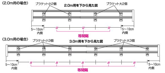 ②すべてのブラケットが等間隔になる位置まで移動させます。ブラケットには太いレール用にLの刻印、細いレール用にSの刻印があります。