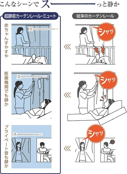 医療機関でも採用されている。静かでスムーズなカーテンレール。
