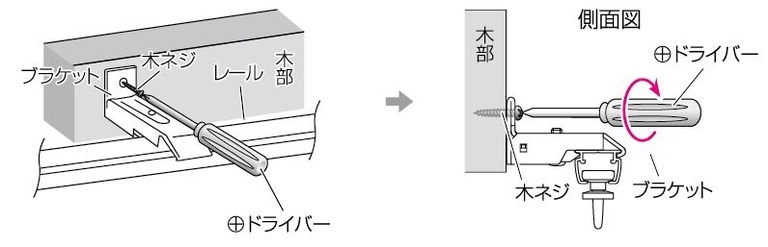 ③ブラケットを付属の木ネジで取付位置にプラスドライバーでしっかり固定します。