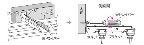 ①レールをブラケットの取付位置に合わせて伸ばします。
