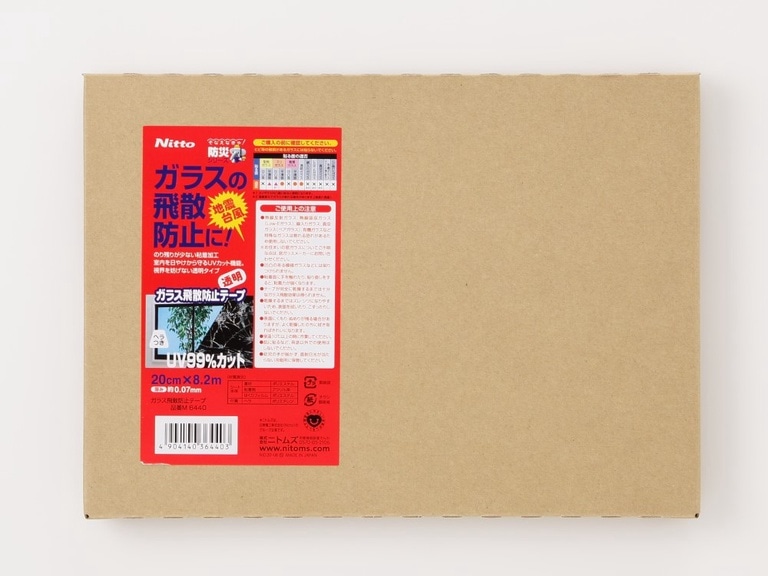 台風や暴風、地震発生などの防災需要が高まっている近年、住宅や家財の被害を軽減できる製品を開発しました。<br>テープタイプで、シートタイプに比べて作業性がよいので施工に面倒を感じる方でも簡単に施工できます。<br>窓ガラスの飛散防止、家財のガラス飛散防止にお使いください。<br>