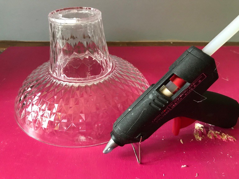 皿とコップをグルーガンで接着する
