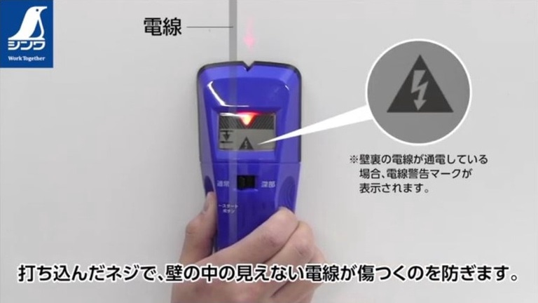 打ち込んだネジで壁の中にある見えない電線に傷がつくのを防ぎます。