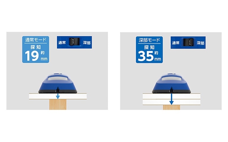 ●探知物検出深度 通常モード:約19mm 深部モード:約35mm
