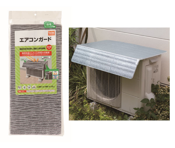 2021.06.17<br><br>エアコンの室外機に取り付ける「エアコンガード」です。<br>直射日光を反射し、温度上昇を抑えることで電気代の節約につながります。