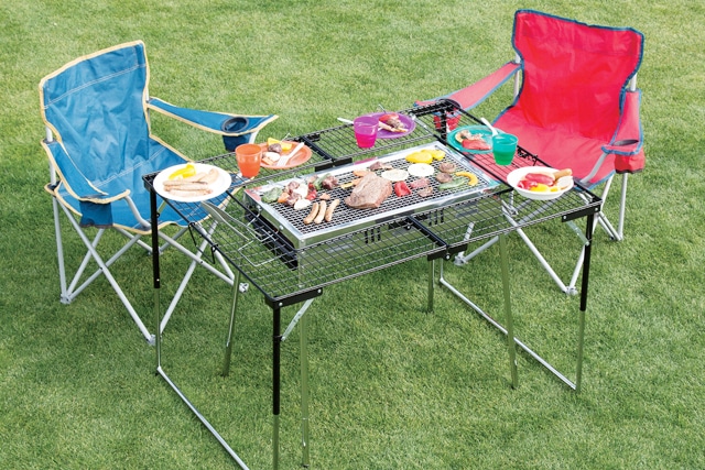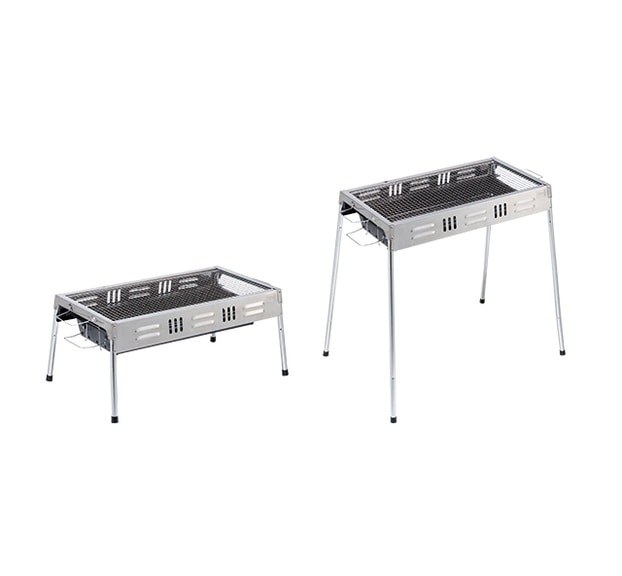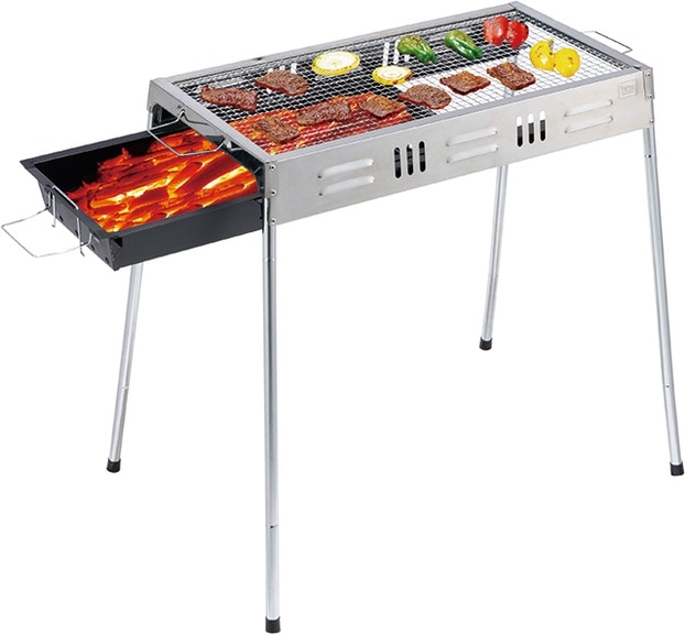 ワイドで、2家族分位の人数が集まるBBQにちょうど良いサイズ。本体は丈夫でサビに強いステンレス製で、バーベキュー網付きです。