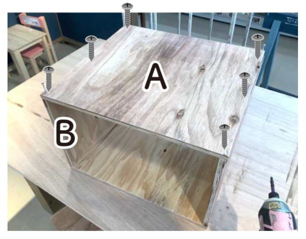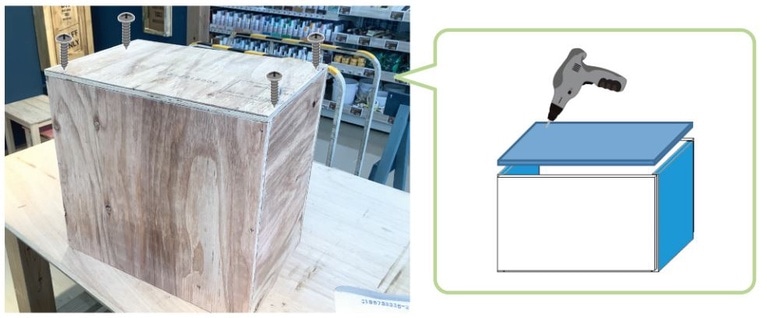 ネジを打つ際、細い木が浮かないように注意します。浮いた場合はいったんネジを抜き、打ち直しましょう。