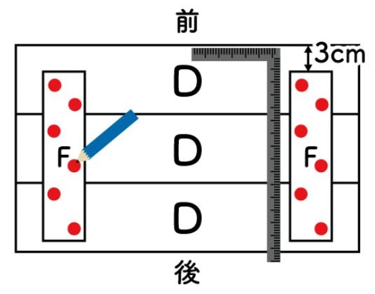 前側を3cmあけ、ビスを打つ箇所に印を付け、下穴をあけます。