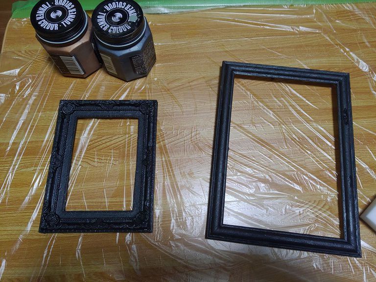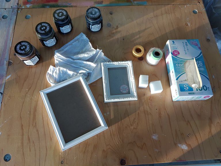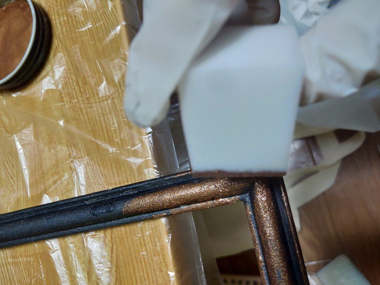 ③ベース色(黒色)をメラミンスポンジで叩くように塗ります。叩くように塗ることで塗料の起伏ができ、金属感が出ます。