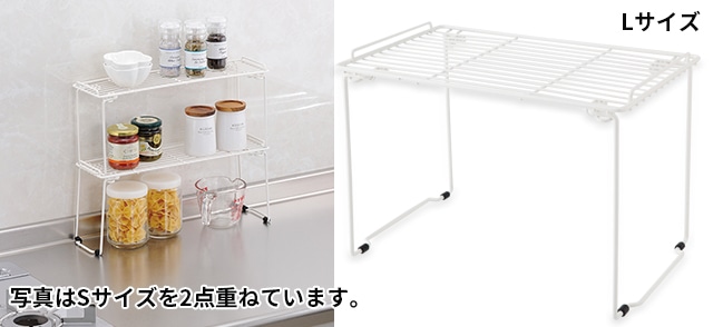 棚同士で積み重ねることができ、SサイズからLLサイズまでご用意しておりますので、スペースにあわせた収納を作ることができます。
