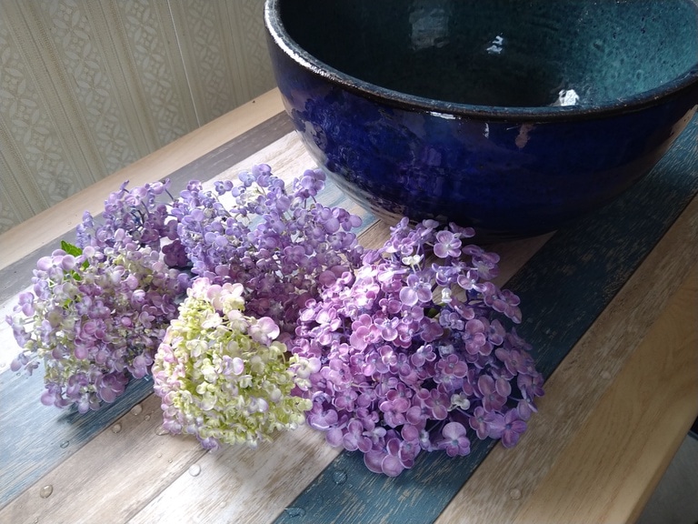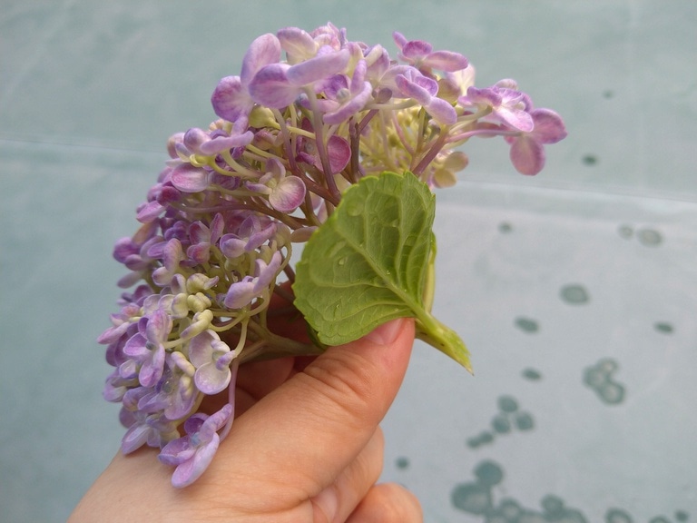 花手水の記事を読んで、真っ先に思い出したのは庭に咲いた紫陽花。