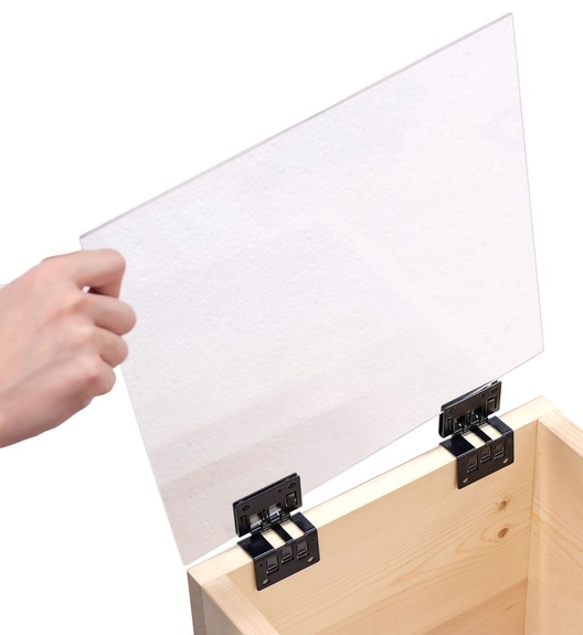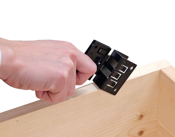 ホームセンター材木エリアで取り扱いの多いワンバイ、ツーバイ材に対応した蝶番を開発しました。