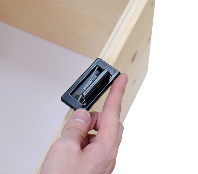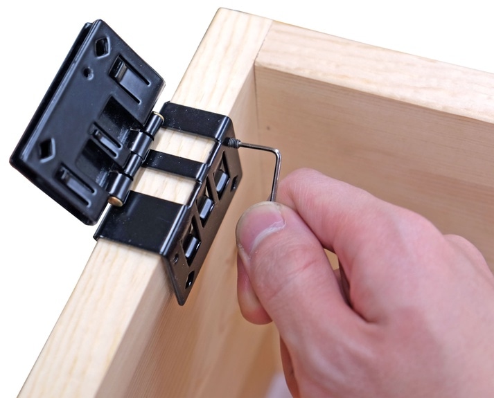 ①取付対象の板部分に蝶番の片側をはさみこみます。