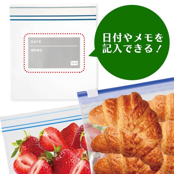 フリーザーバッグの中央に日付やメモを記入できる欄があるので、食品の管理がしやすくなっています。