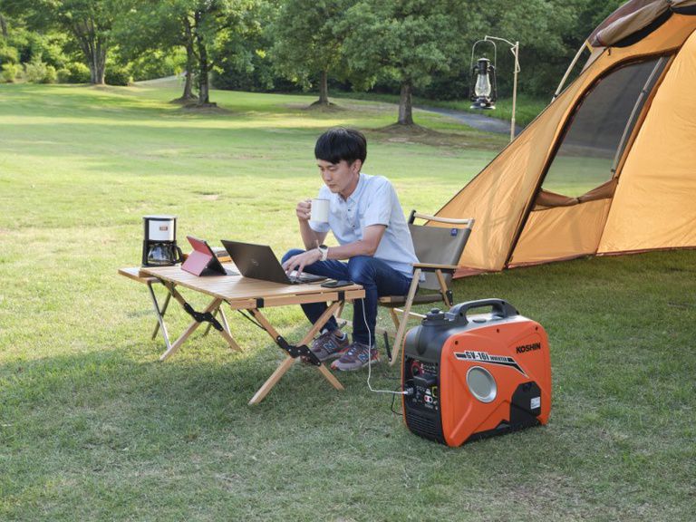 GV-9iの定格出力は0.9kVAで100V900W。休みの日に趣味のDIYで電動工具を動かしたり、電気の取れない所で充電作業をしたり、と家庭用での電動機器を動かしたり充電器への使用もおすすめです。またコンパクトで収納にも場所をとりません。