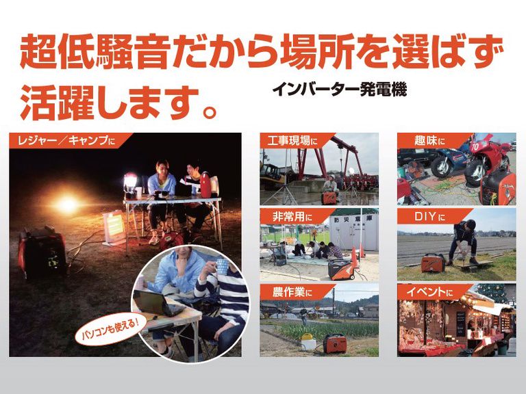 もちろんインバーター式だから制御された安定した出力。日常から非常時まで幅広く対応できる発電機としておすすめです。