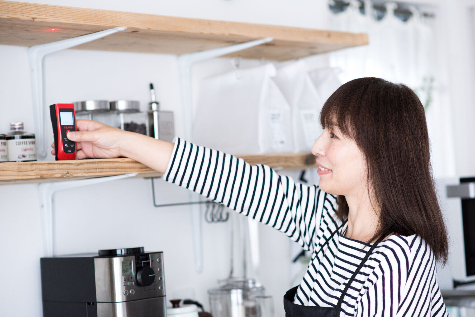 そんなとき、レーザー距離計なら、片手に持ってかざすだけなので楽な姿勢で測ることができます。液晶に数字が表示されるので読み間違える心配もありません。数値が表示された画面を写メに撮れば、メモをする手間も省けますよね」と瀧本さん。