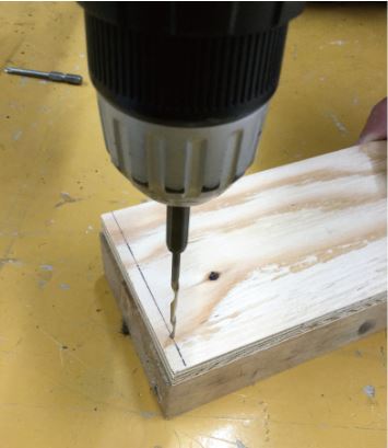 さしがねを使用して印をつけて、ドリルで下穴をあけます。