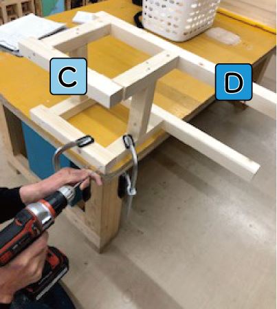 クランプで固定して、連結部材をねじ留めして組み立てていきます。