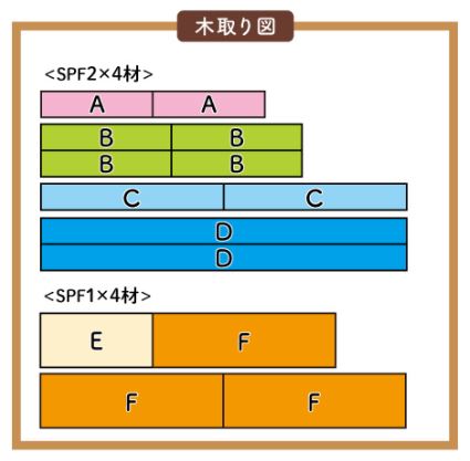 SPF2×4は最初に縦半分をカットしてからそれぞれ切り分けましょう。