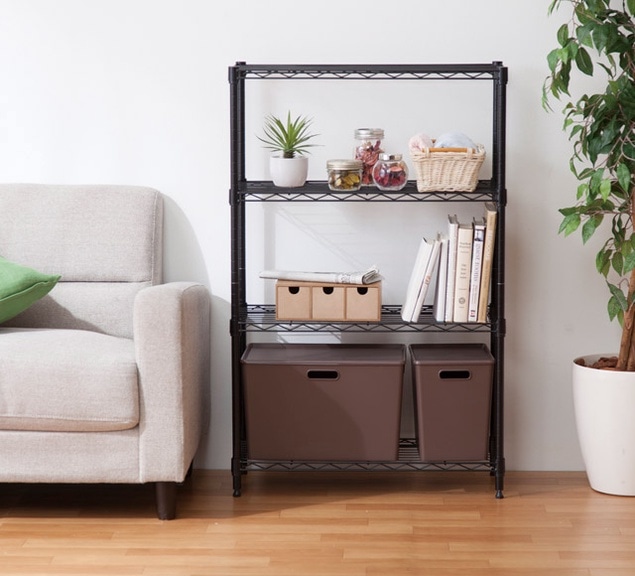 サイズは幅44.5㎝の3段、4段、5段と、幅64.5㎝の4段、5段とで計5種類。リビングだけでなく、キッチン・ランドリー・玄関・クローゼット等 、様々なシーンで使用可能です。