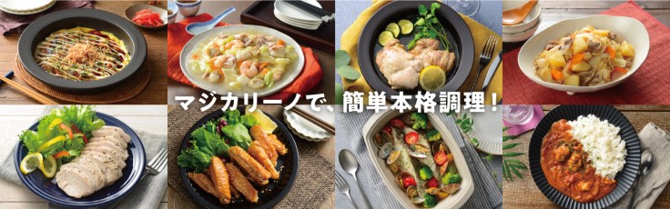 忙しい朝や、疲れた夜でも美味しいご飯が作りたい。洗い物も少なく、簡単にできないかな?そんな望みのお手伝いをする、マジカリーノシリーズ。<br><br>レンジで発熱する皿は、食材を入れて、電子レンジやオーブンで加熱するだけで、肉や魚が焼けて、そのまま食卓に出せるお皿です。調理からそのまま食卓へ出せるので、洗い物も減らせます。