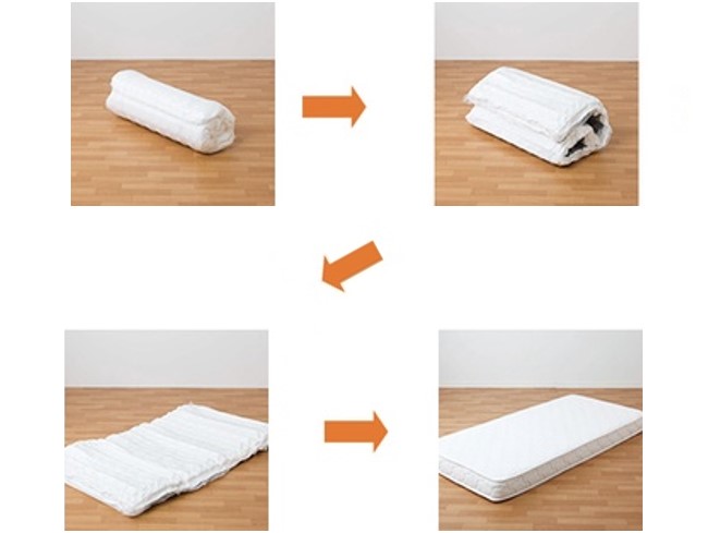 圧縮ボンネルマットの採用により、大型サイズでありながらコンパクトな梱包サイズを実現し、配送に頼らず自家用車で楽に持ち帰りができます。商品を開封後、丸1日置くだけで元のマットレスの形状に戻ります。