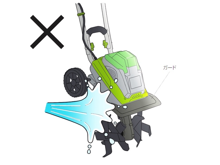 ●耕うん刃を水洗いする場合は、ガードより上に水がかからないようにしてください。