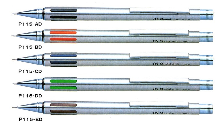 実はこのスタイルのグリップは「グラフ1000」以前に発売されていた一般筆記具「P115」で先に採用されていた。それをベースに製図用グリップに進化させていたのだ。