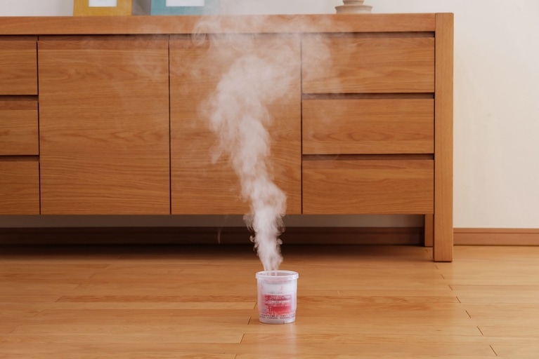 蒸散後、部屋に広がった白煙(蒸散成分)がすみずみまで行き渡り駆除効果を発揮します。