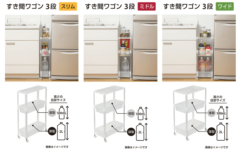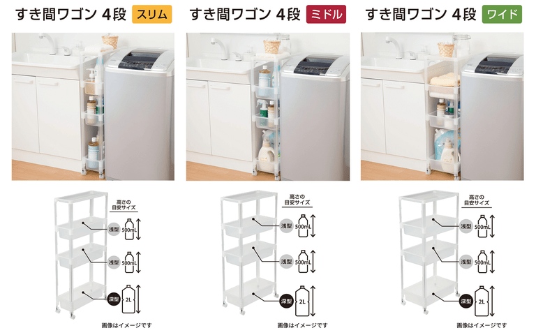 お家での収納スペースで、キッチンなどのモノが多いスペースではすき間ができやすく、また洗面所まわりでは収納場所が少ない、というようなデッドスペースを有効活用したいというニーズに応えて開発した商品です。