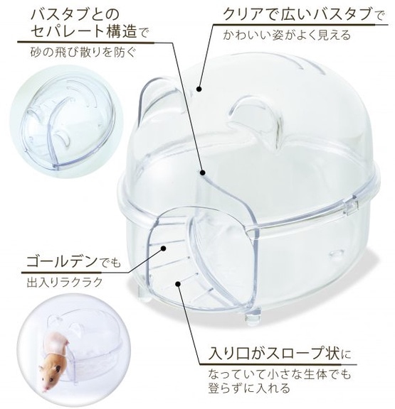 「いつもかわいらしい姿を見ていたい」というハムスター飼育者さんのお声に応えるため、今回のお風呂もクリア感を大切にしました。