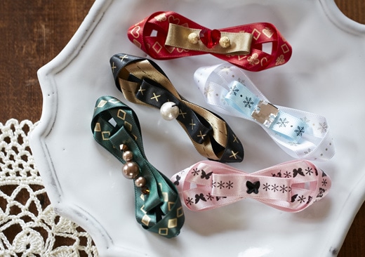 例えば、リボンの色が水色の時は雪や、赤・金の時はトランプなど、リボンの色と模様を合わせるとかわいく仕上がります。