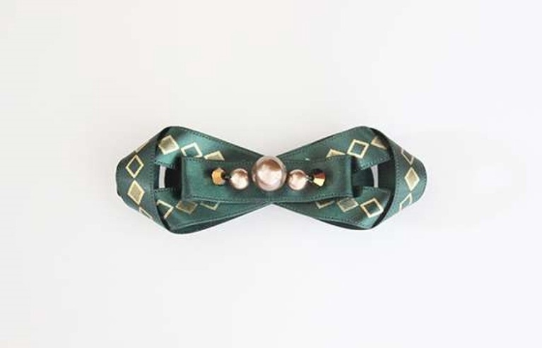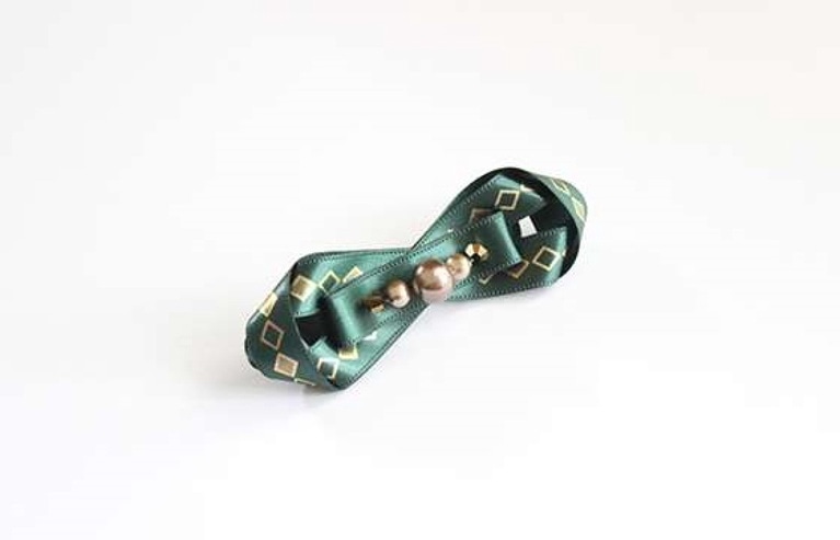 バレッタ金具に両面テープを貼り、リボンCを貼りつける。