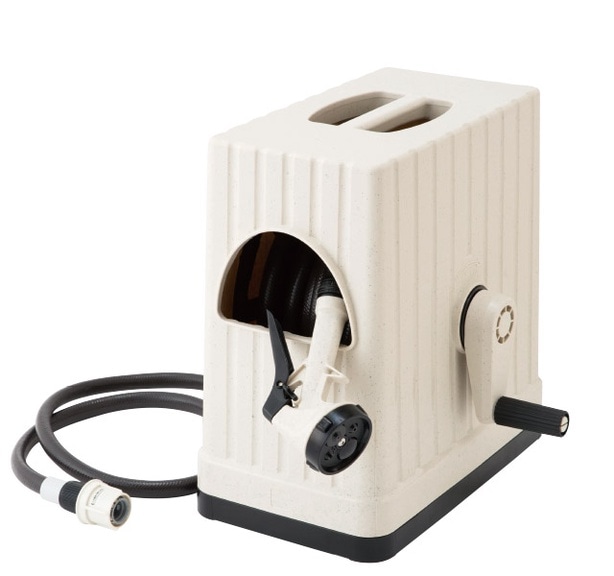 2021.04.22<br><br>紫外線・汚れをガード、見た目もスマートなホースリール<br><br>雨風等からホース本体を守るフルカバータイプのホースリールです。<br>耐圧糸入りで折れにくい・ねじれにくいホースを採用。