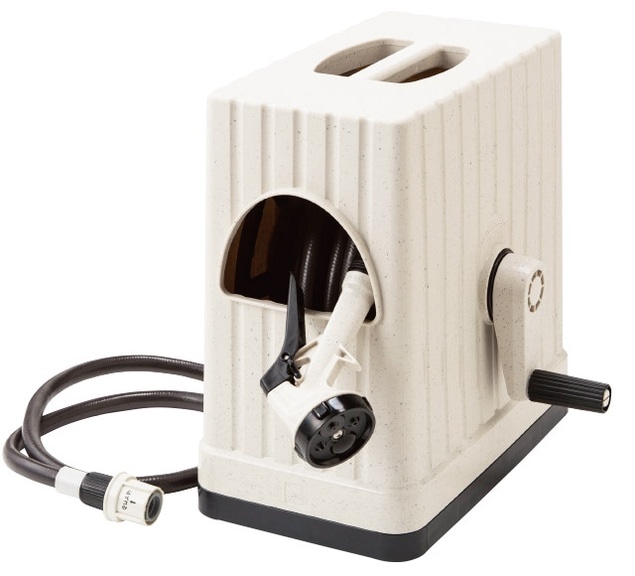 ハンドルをくるくる回してホースをスッキリ収納。見た目もスマートです。