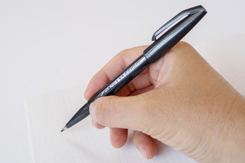 少々紛らわしいが、明確に違うポイントがあるので整理しておきたい。「筆タッチサインペン」は、インクが全12色とカラーバリエーションが豊富な特長がある。対して今回ご紹介する「筆文字サインペン」は黒一色。