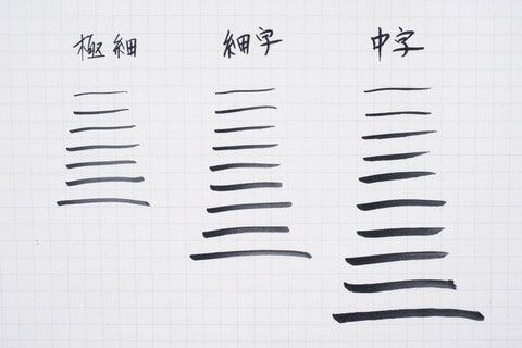 左から、「極細」、「細字」、「中字」