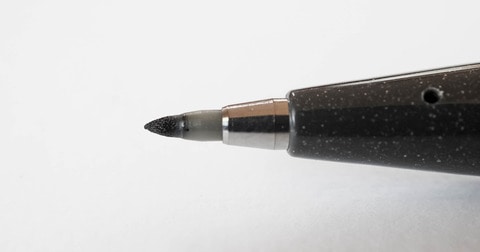 一方、下の「筆タッチサインペン」は真っ黒。ちなみにこの黒インクは「サインペン」と同じだという。