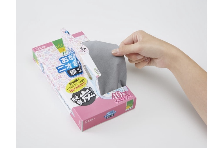 ●炭配合のシートが使用済みのおむつや尿とりパッドの気になるニオイを吸いとります。