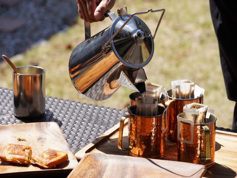 木々に囲まれ、鳥のさえずりを聞きながら大自然で味わうコーヒーは、自宅やカフェで飲むコーヒーとは違う美味しさや楽しさがあります。