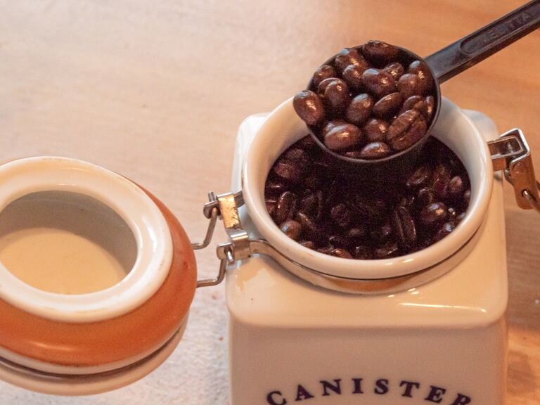 コーヒー豆を測るために使用する計量スプーン。コーヒー1杯を飲むために必要な豆の量は約10gであるため、すくっただけで10gを測れるものであれば十分でしょう。