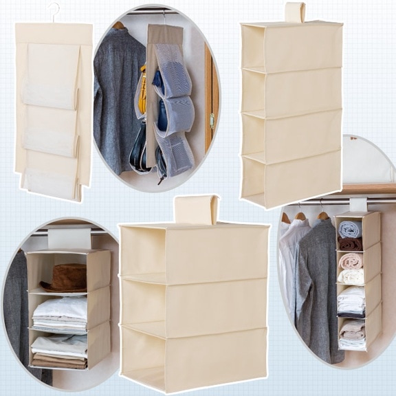 吊り下げて空間を有効活用できるタイプ、置いて重ねて上手に収納できるタイプと仕切って見やすくできるタイプの3タイプをご紹介。