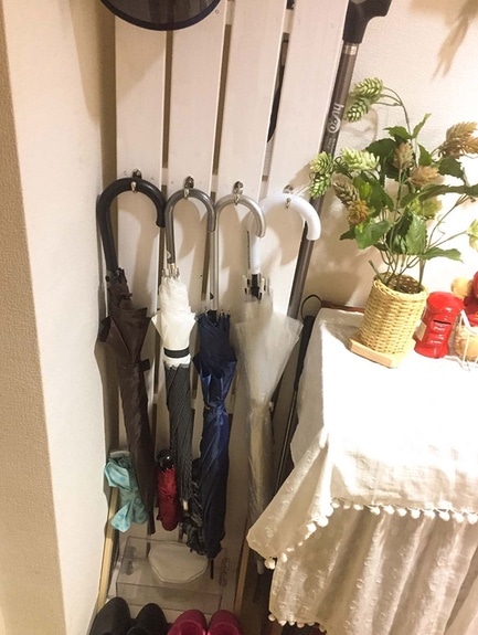 傘立て周辺は大混乱! 手づくりのすのこ傘立てで「見える」化