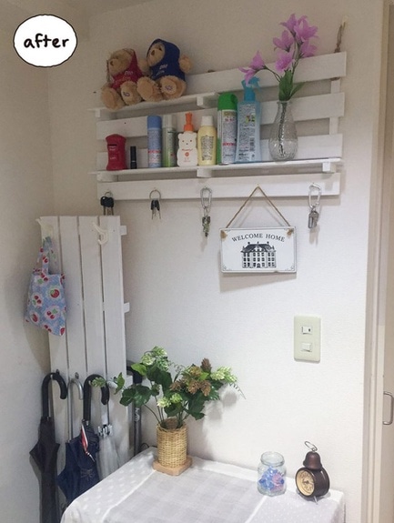 靴棚の上のものを減らしたい! すのこラックを壁にかけてスッキリ!
