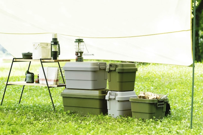 キャンプ用のコンテナを活用すると、収納性や利便性がアップします。